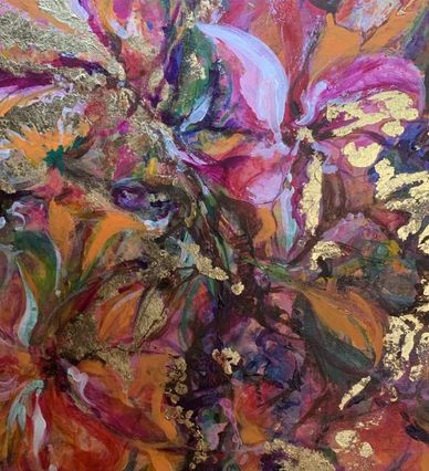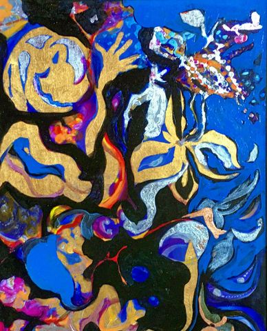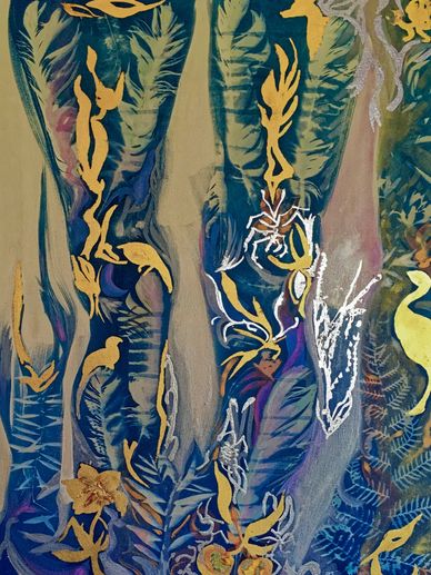 Medium: Cyanotype acrylics, metal paints, silver and gold leaf on canvas