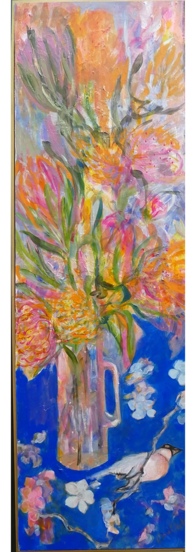 This canvas started as a pastel then texture and hazy effects to help keep it light. Then moved on to using light oil paint on the canvas.
